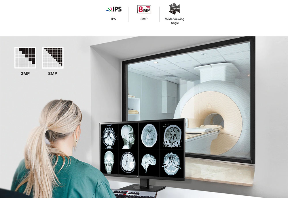 The 27-inch 8MP IPS display provides the ideal brightness for secondary review. The 178°-wide viewing angle lets patients and doctors to see accurately reproduced images with minimal distortion.